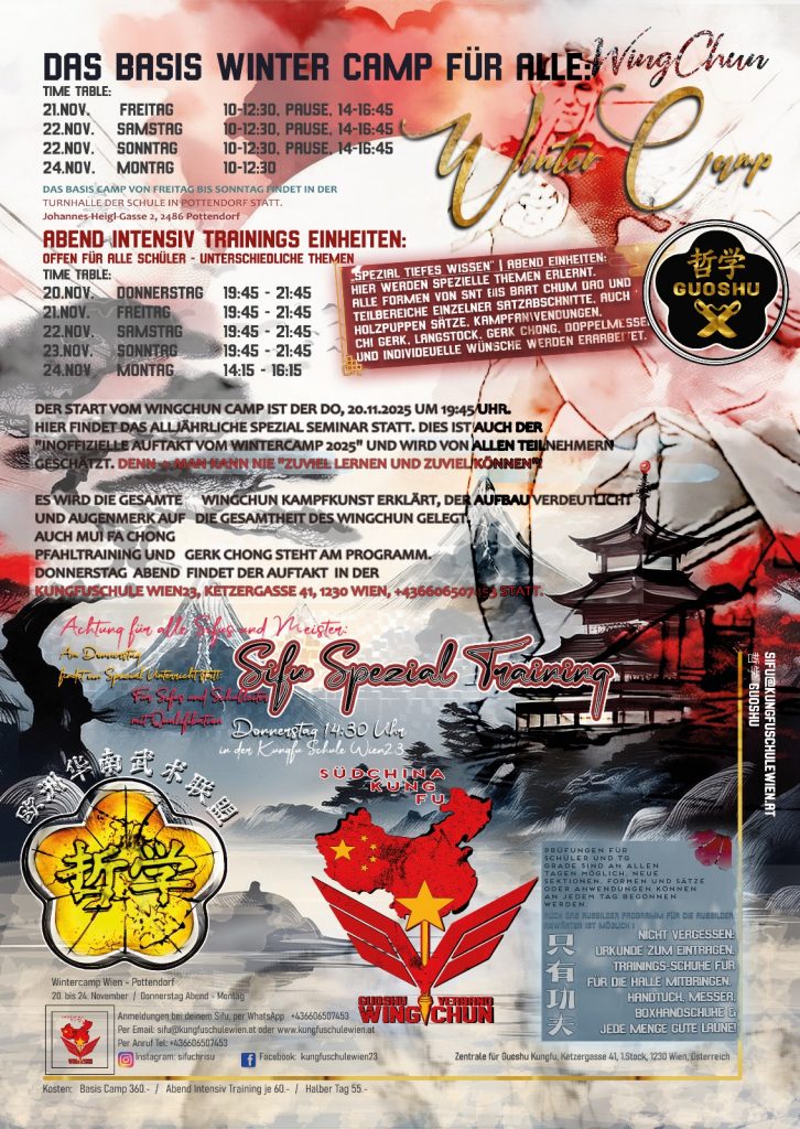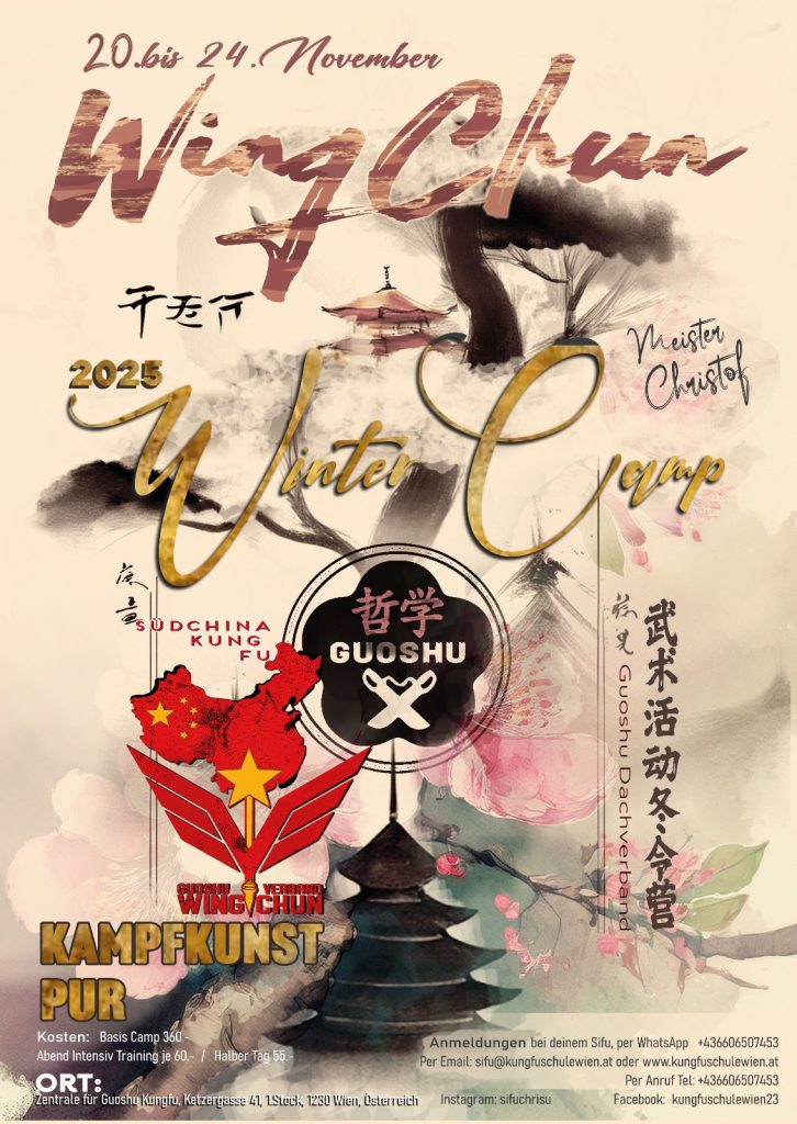 Ich bin Meister Christof Hampel von der WingChun Guoshu Kampfkunst Family – und ich freue mich sehr, euch zum Wintercamp Wien23–Pottendorf 2025 einzuladen!